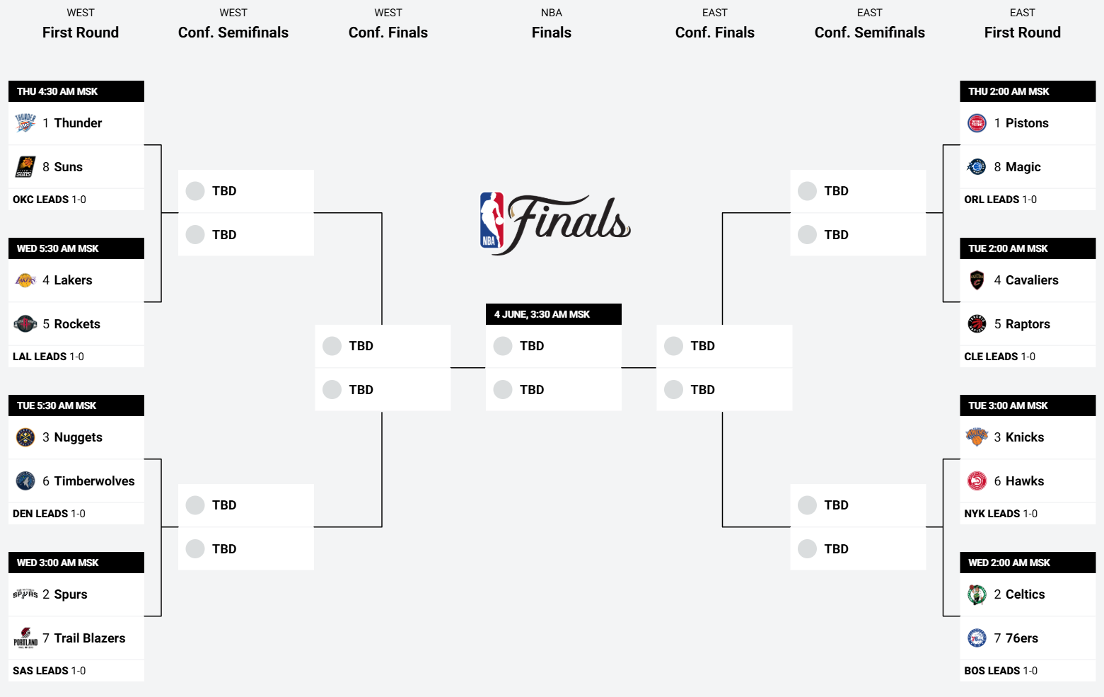 В сериях команд с высоким посевом всегда есть очевидный фаворит в противостоянии, и «Детройт» точно не является исключением. Мощно проведенный регулярный чемпионат, отличная командная химия и хороший подбор игроков дают Пистонс очевидный перевес в их серии. Но «Орландо» может доставить сопернику неприятности, если сохранят глубину в составе, в который после травм вернулись Франц Вагнер и Джейлен Саггс. Уверенно переиграв «Шарлотт» в раунде плей-ин «Мэджик» заработали право огорчить фаворита, и очень постараются этим правом воспользоваться.